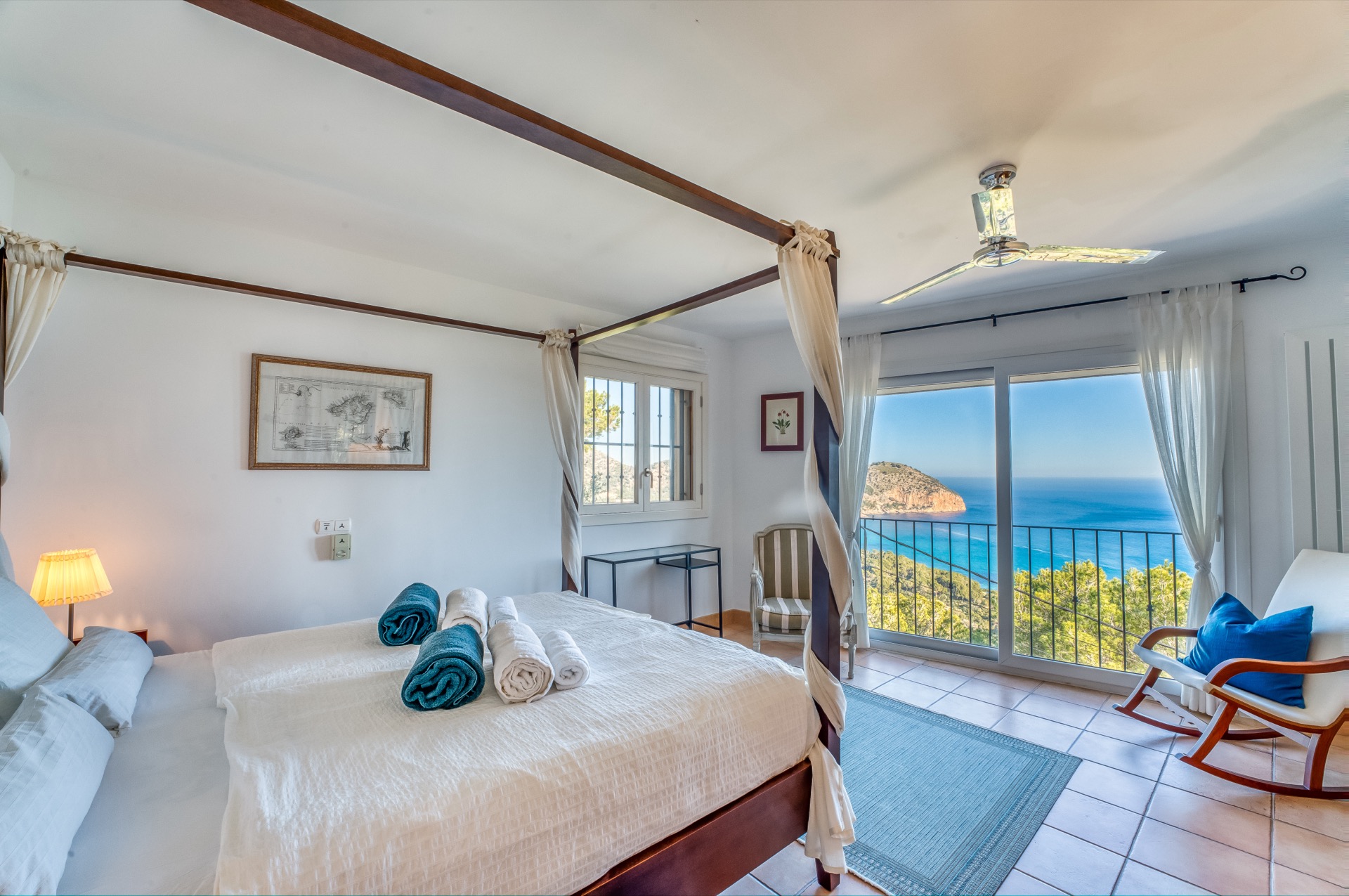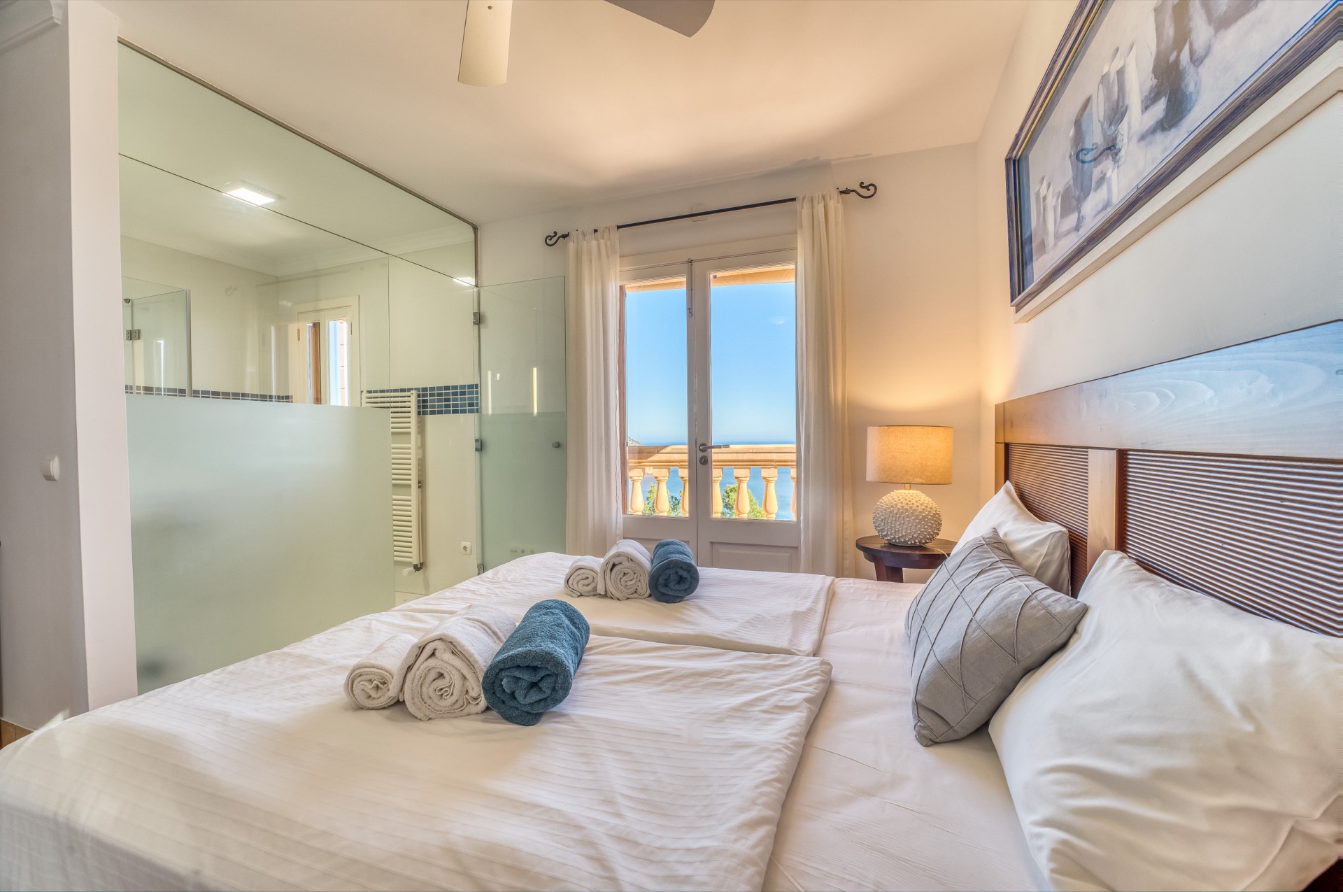 Villa Ventimar thront auf einem Hügel über der malerischen Bucht von Canyamel und bietet Ihnen einen atemberaubenden 180°-Panoramablick über das tiefblaue Mittelmeer. Die 250 m² große Villa erstreckt sich über drei Ebenen mit großzügigen Terrassen, einem beheizbaren Infinity-Pool und drei elegant eingerichteten Schlafzimmern.