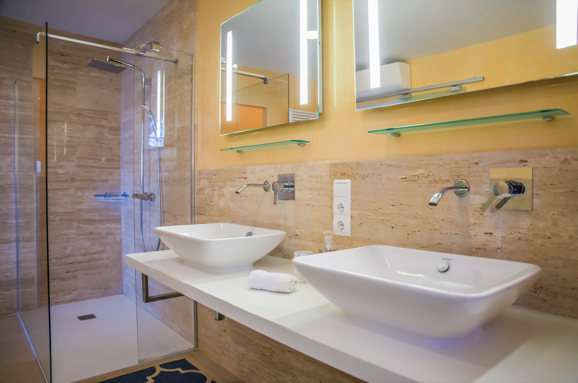Gemütliches Doppelzimmer mit eigenem Bad und Blick auf den Pool